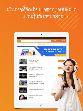 Aplikacja posiada sklep muzyczny, gdzie możesz znaleźć piosenki karaoke niektórych z najpopularniejszych wokalistów, w tym Anity, Taiy, Jojo Miracle, Sam Intharaphithak, Alexandy Bounxouei, CELL, Touly, Kataiy, Ketsana Vilaylack, Supasang i innych.